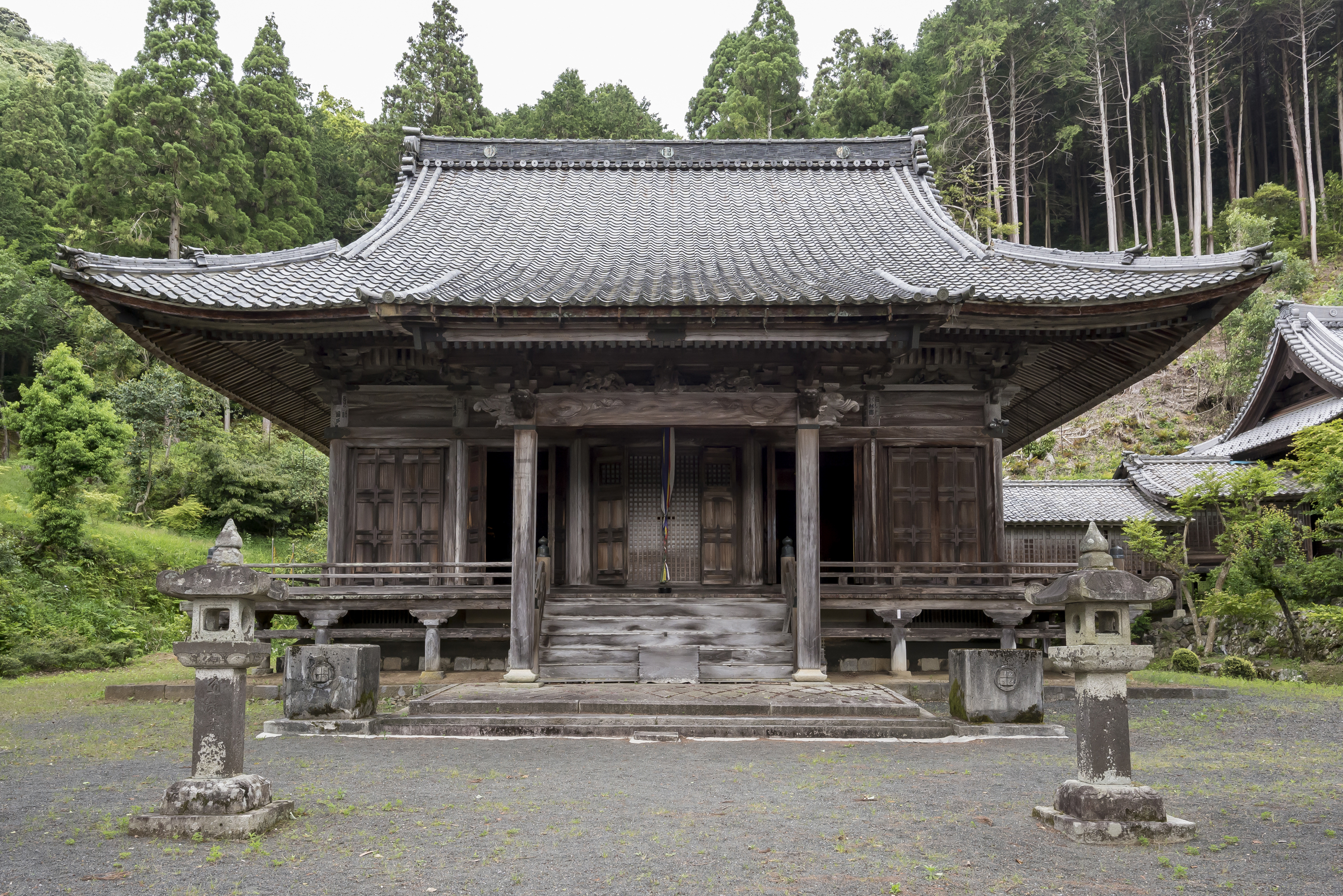 正徳5年(1715)に上棟されたとされる本堂。本堂の屋根を支える虹梁全体に巨大な龍が彫刻され、訪れる人々ににらみをきかせている。また、天井には龍の絵が描かれるなど、本堂内部にたくさんの龍が表現されている。