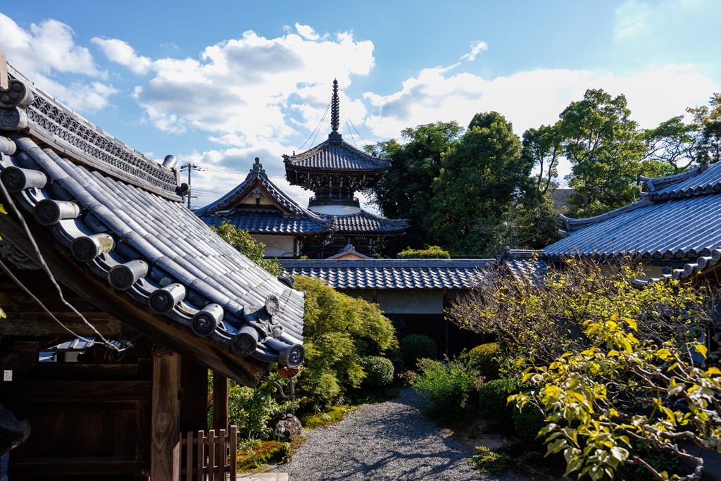 内内陣におまつりされている2体の聖観音菩薩立像は、向かって右側の1体が11世紀中ごろ、左側の1体が12世紀ころに造立されたと考えられているお像である。11世紀中ごろに造立された聖観音立像は、頭頂部から足元までヒノキの一材で造立され、彫眼、古色である。この像は、滋賀県栗東市の大野神社にておまつりされる十一面観音立像と法量や技法が共通し、同一の工房にて造立されたお像であると指摘されている。12世紀に造立された聖観音立像は、ヒノキ材の一木造で、右足を少し前に出す点が特徴である。昭和7年(1932)に修理された際の修理銘が台座裏に貼り付けられている。