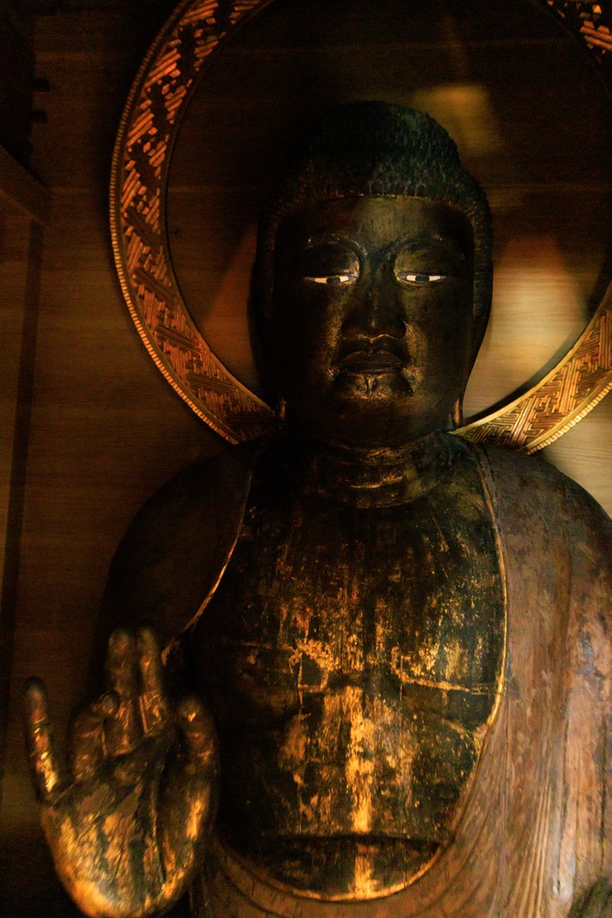 お堂の内部に入ると、ご本尊・薬師如来坐像の大きさと迫力に驚かされます。奈良時代から続く古刹のご本尊としての風格だけでなく、悪いものが地域に入らないように見守る地域を守る仏さまとしての風格も感じられます。